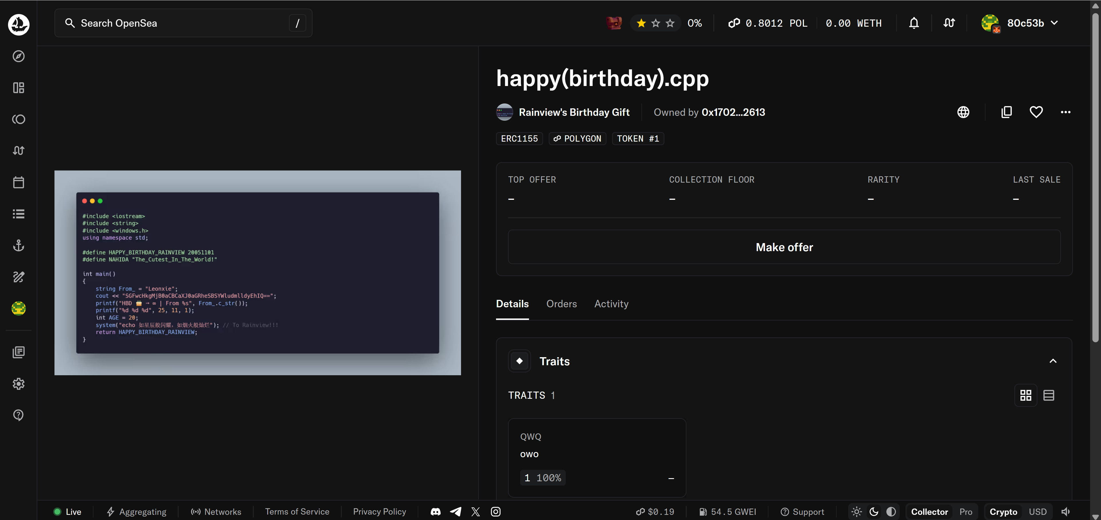 (其实我也看不懂Solidity,这个是我发行NFT时OpenSea自动生成的)