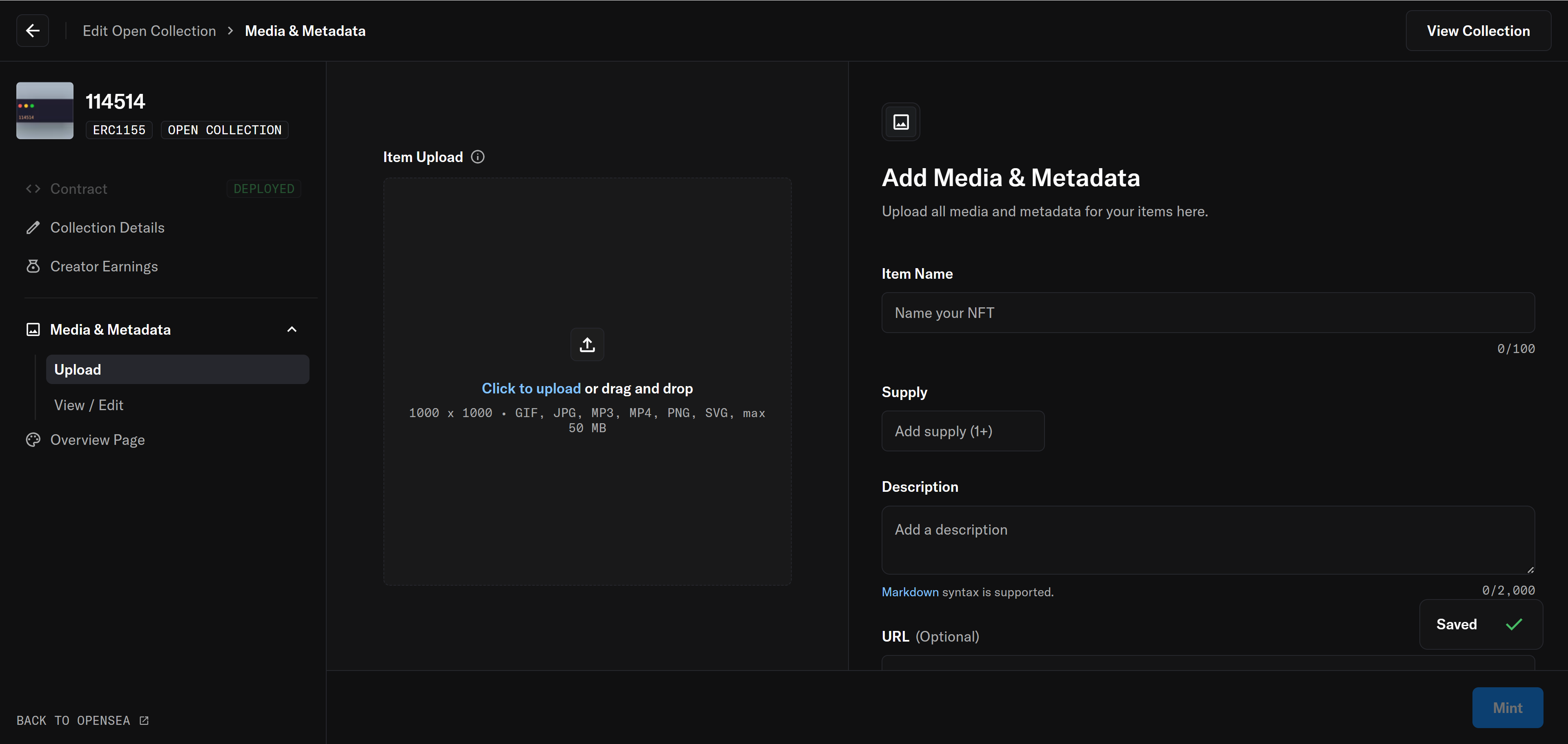 这里就是刚才提到的版税,笔者建议使用5%!Recipient Wallet Address就是版税会到哪里去,输入你的钱包地址即可。