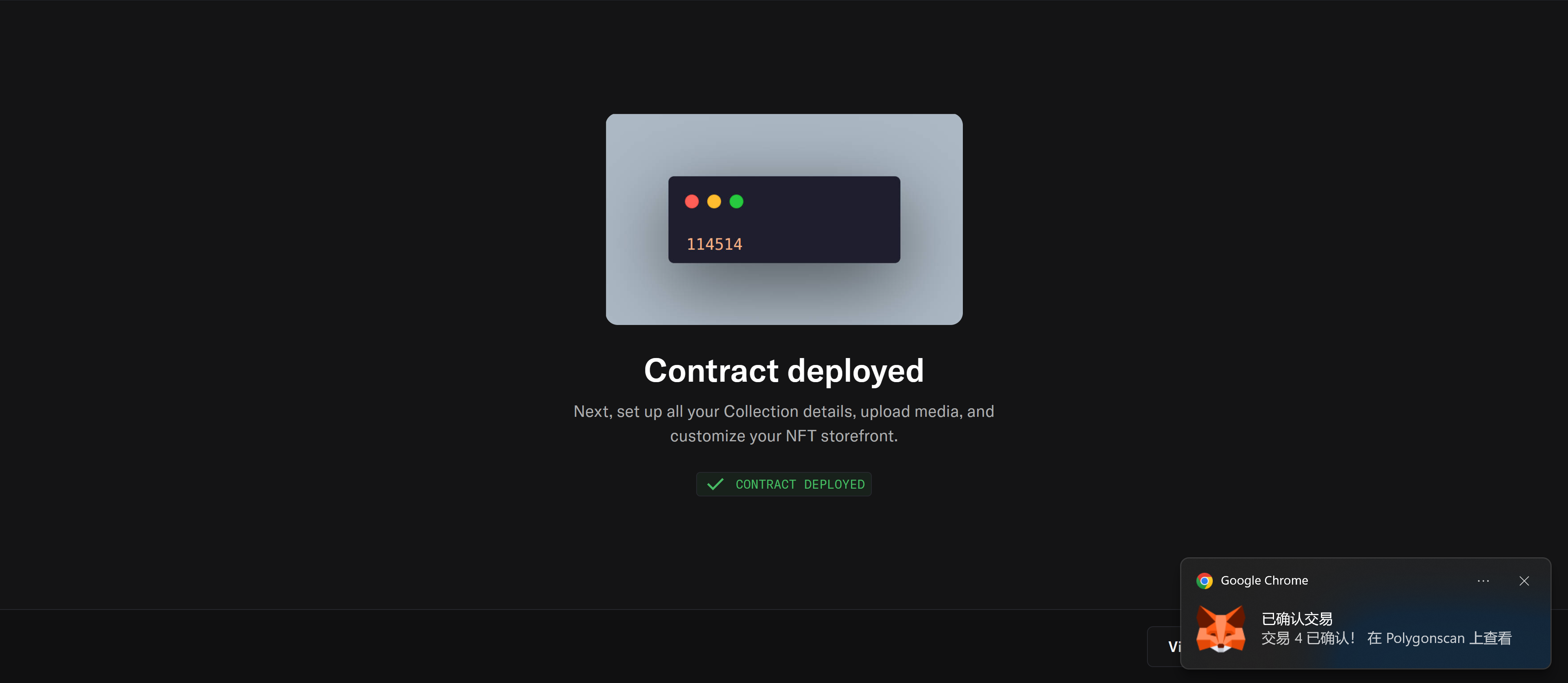 接下来,上传Open Collection的封面,输入合约名称、Token标志。注意Chain的选择,笔者建议使用Polygon,Gas费较低。